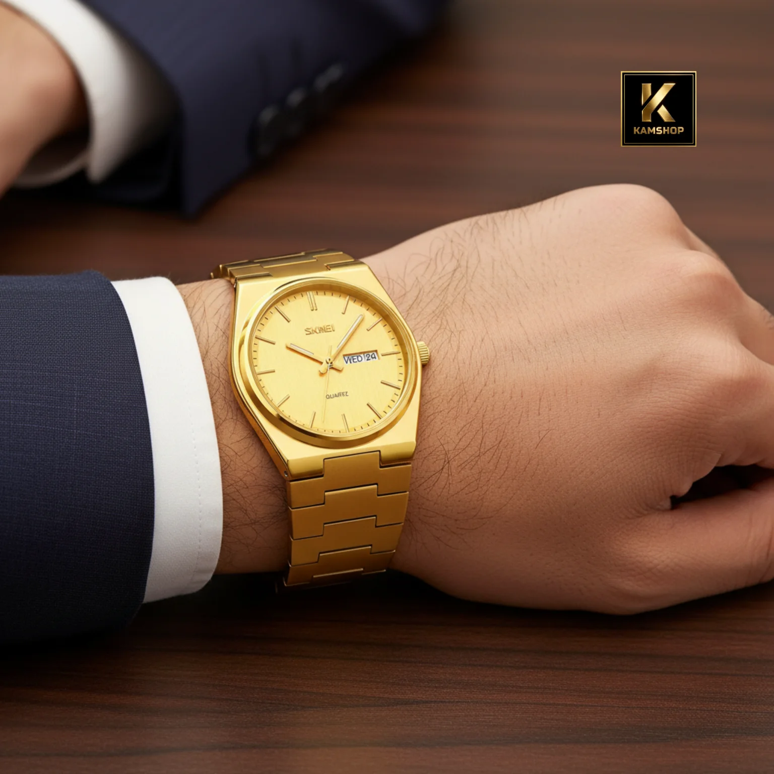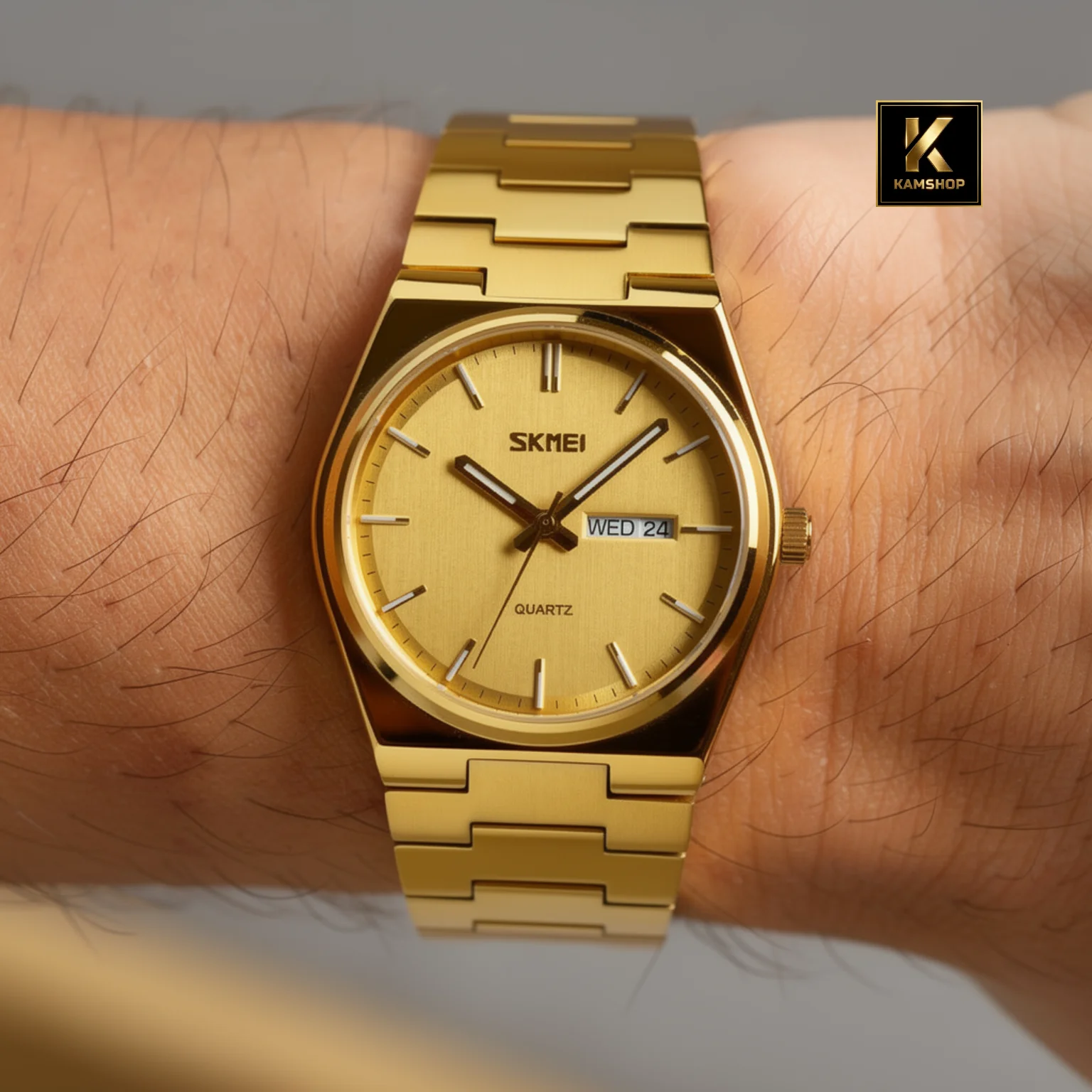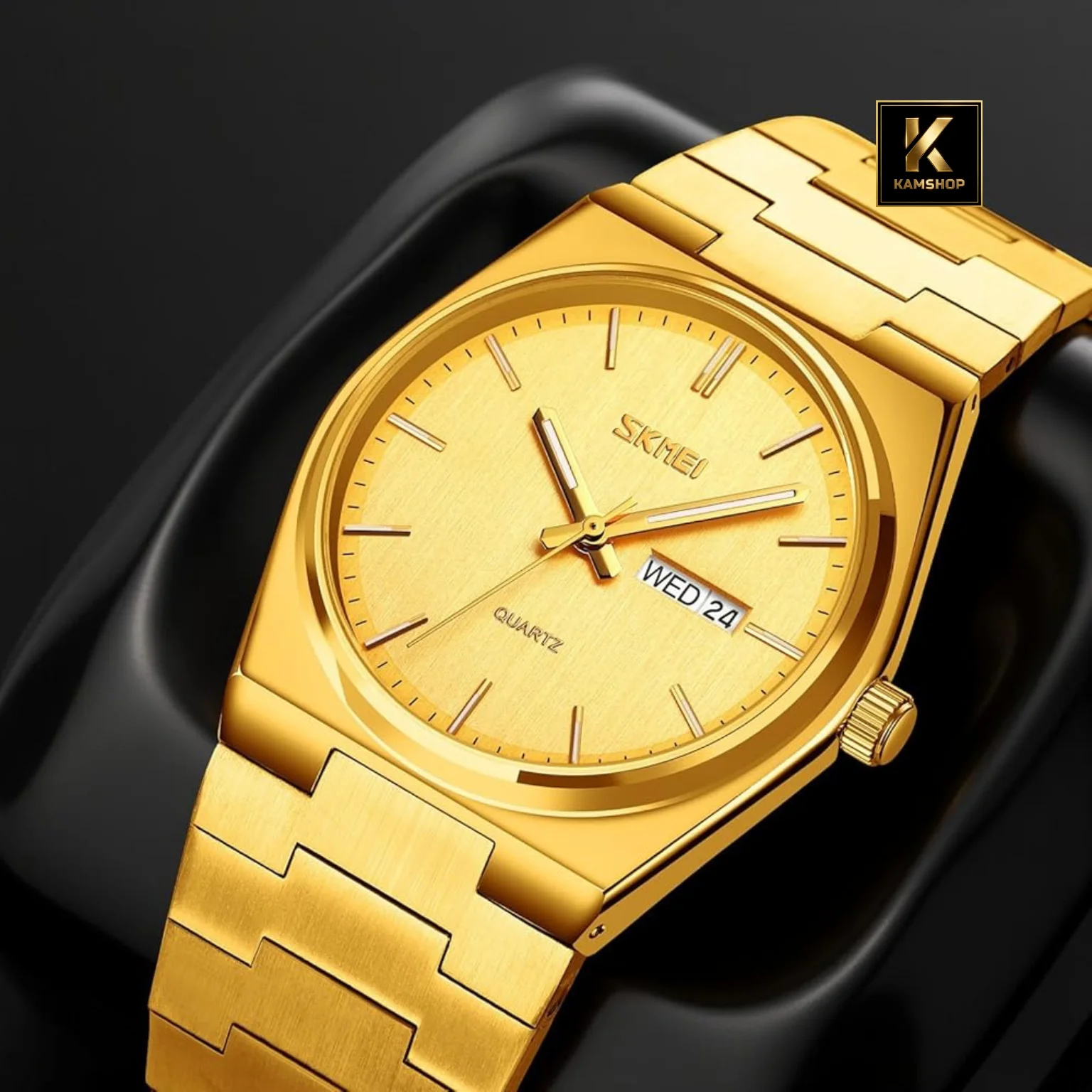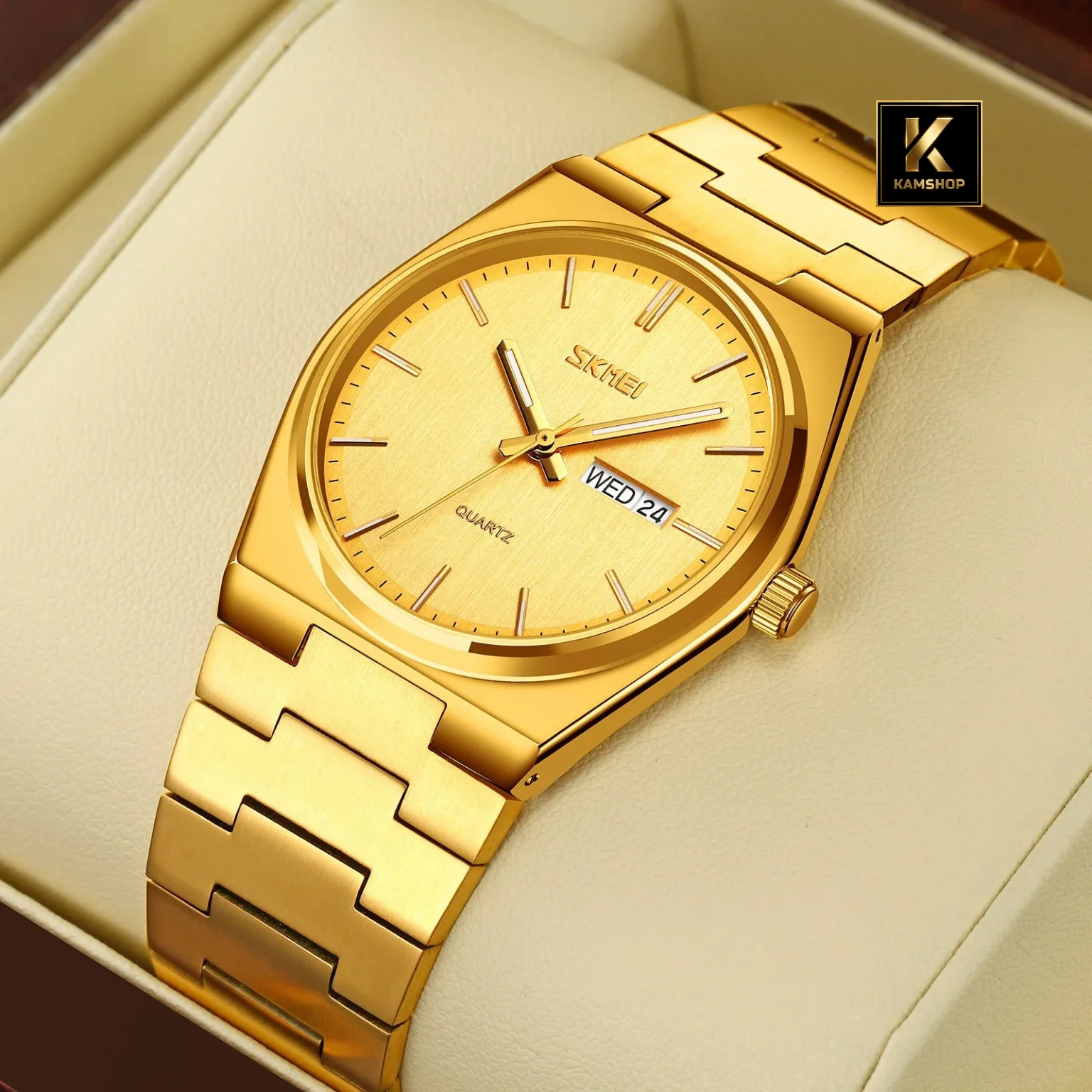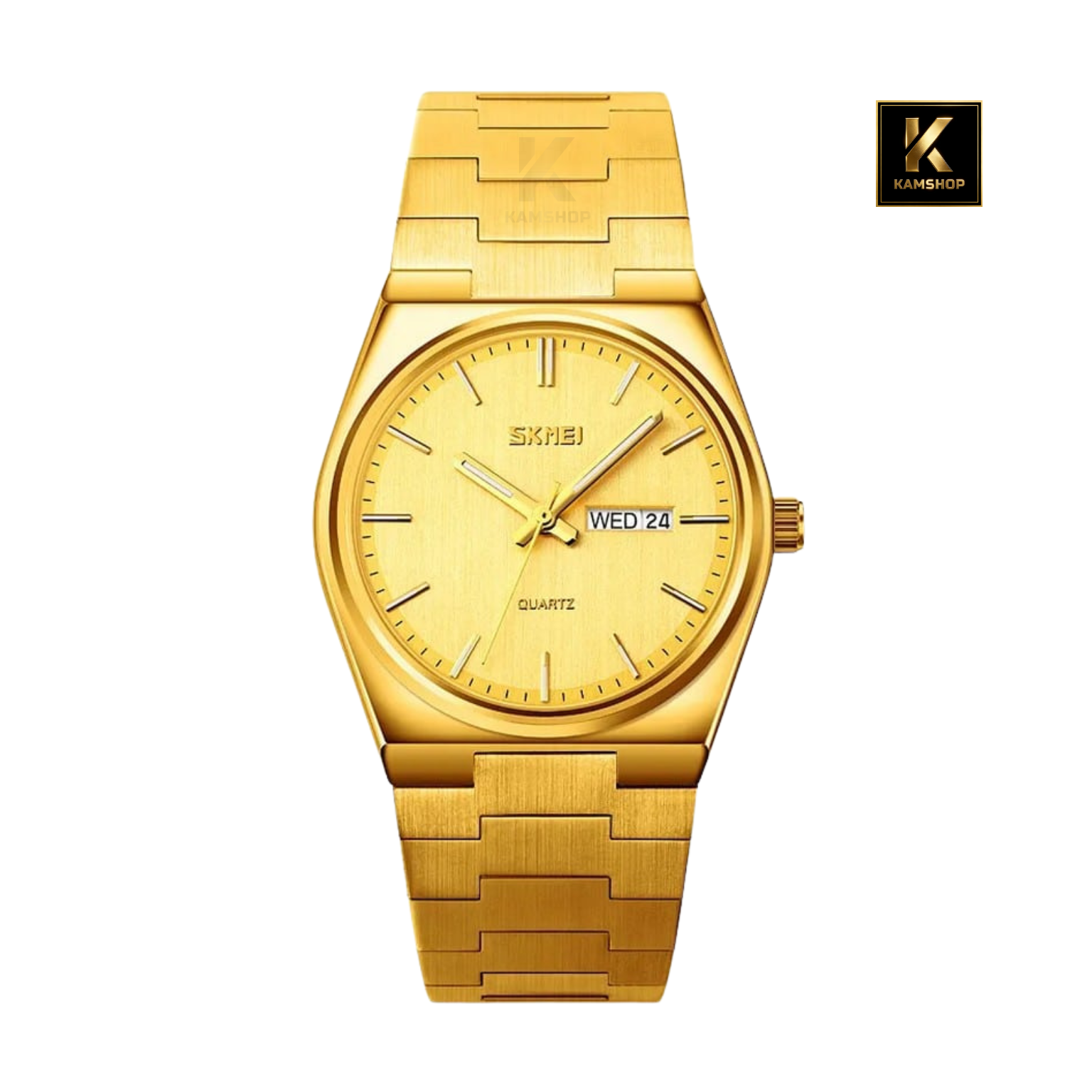 La montre de luxe à quartz Waterproof pour hommes Silver Gold SKMEI 9288, un modèle qui allie parfaitement élégance et fonctionnalité. Son bracelet en acier inoxydable argenté apporte une finition soignée et un excellent confort au poignet, tandis que son cadran Gold épuré offre une lisibilité claire et raffinée.
