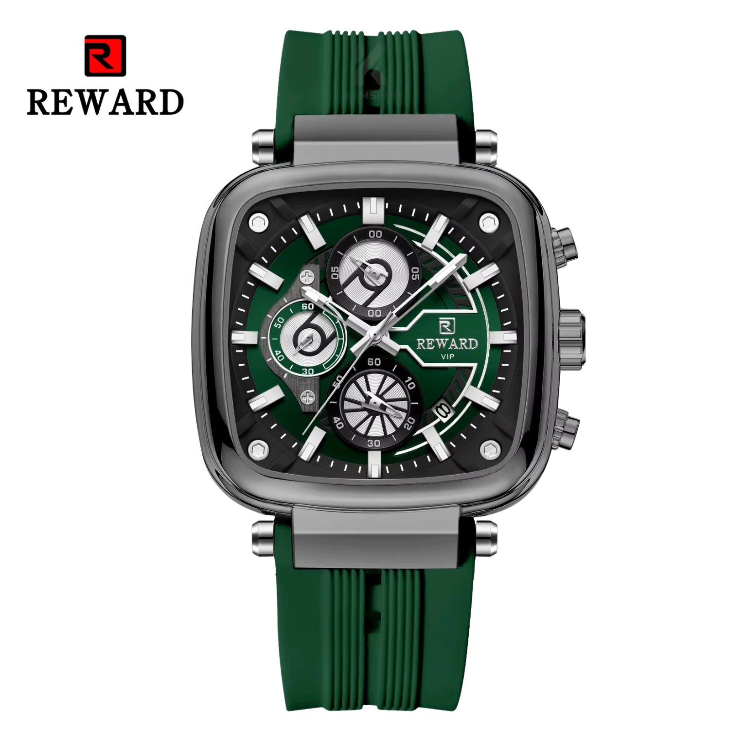 Alliez élégance et performance avec la Montre de luxe homme REWARD Vert, un modèle raffiné au design carré de 44 mm. Son mouvement à quartz précis et son autonomie de 2 ans en font un accessoire durable et stylé pour toutes les occasions.