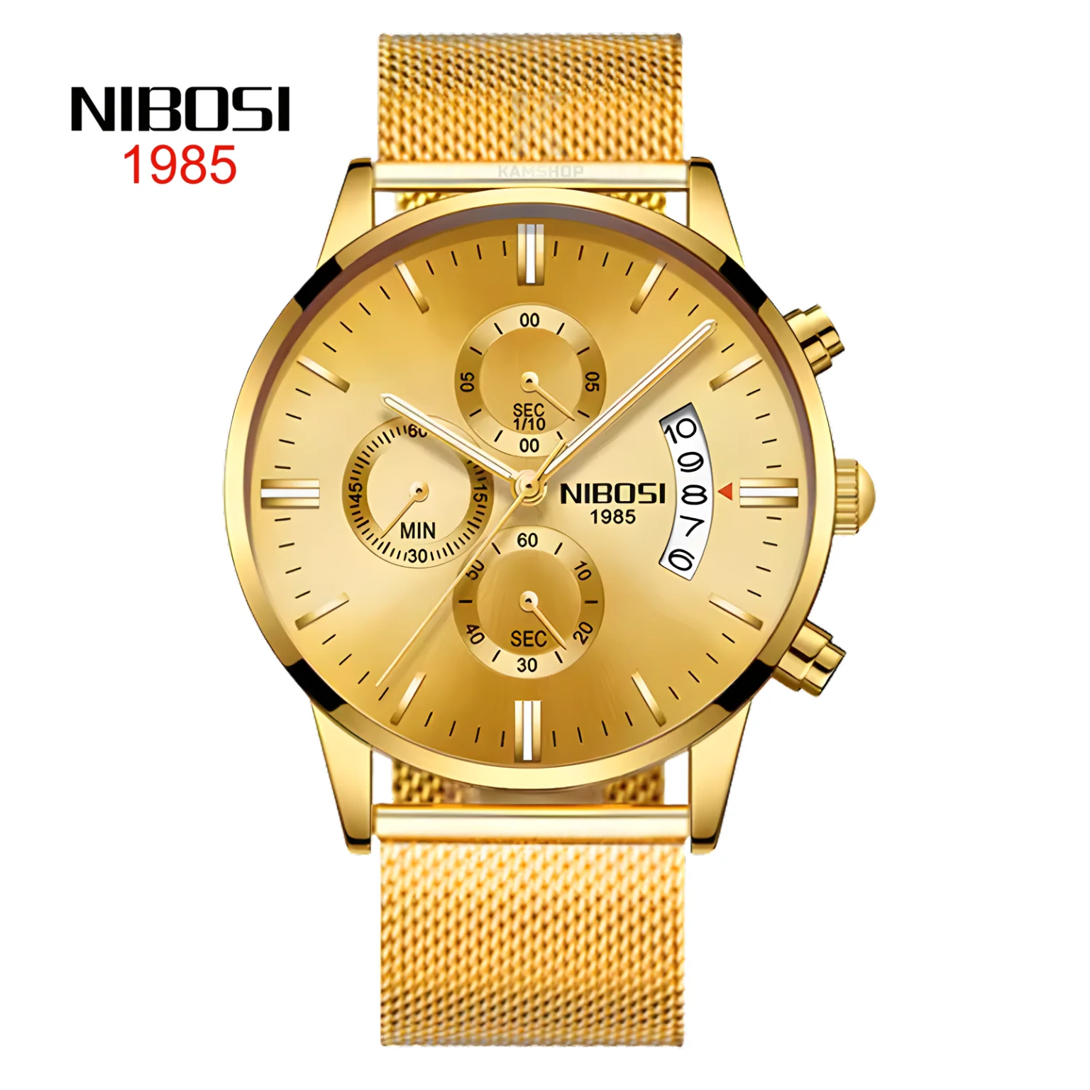 La Montre Mesh chronographe à quartz de luxe pour homme Doré NIBOSI 2309 est un modèle moderne, raffiné et parfaitement équilibré entre élégance et performance. Avec son bracelet en maille (mesh) argentée et son cadran blanc lumineux, cette montre offre une allure premium qui s’adapte aussi bien au style professionnel qu’aux tenues casual chic.